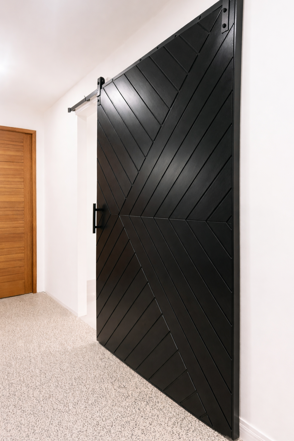 Designed for both functionality and visual simplicity, this system suits a wide range of openings, accommodating door widths from 600mm to 2100mm. For larger openings, doors can be constructed up to 3000mm using two seamlessly joined panels, creating the appearance of one continuous door.